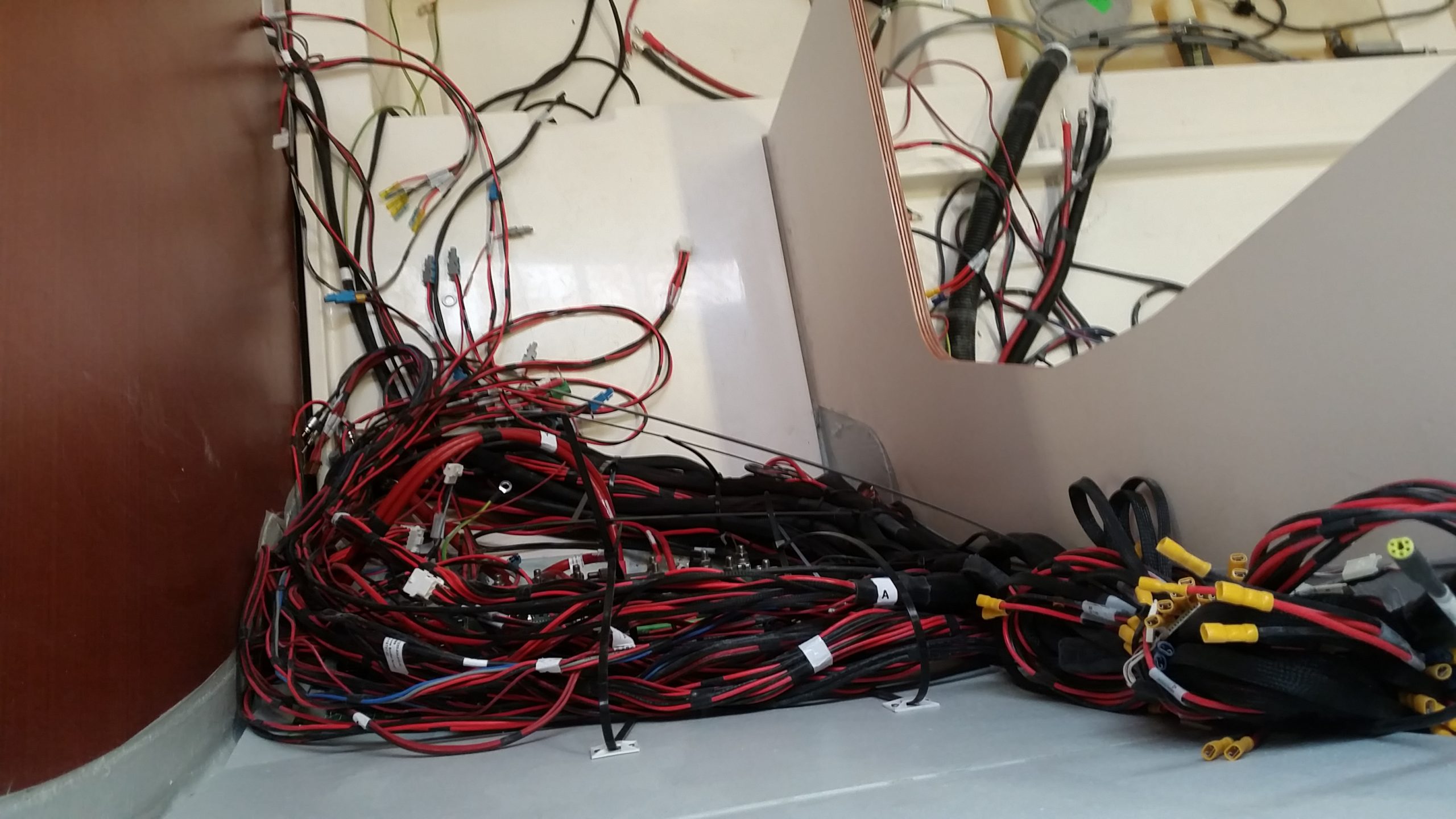 Für Technik-Fans: Einen solch komplexen (analogen) Kabelbaum wird es in ein bis zwei Jahren nicht mehr geben. Die Digitaliseriung macht auch vor dem Yachtbau nicht Halt: Das digitale BUS-System (z.B. von B&G/Navico) mit einem Zentralrechner und einer einzigen Datenleitung für das Netzwerk durch das Schiff wird die Verkabelung massiv vereinfachen.