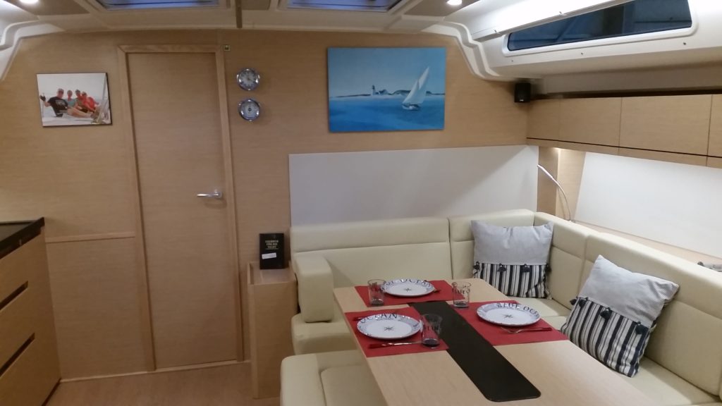 Auch im Salon konnten wir endlich aufräumen; alle Segel waren draussen und die unzähligen Kartonschachteln mit unseren persönlichen Sachen, die wir per Container von Griechenland hatten nachsenden lassen, waren nach 2 Tagen ausgeräumt. Unser berühmtes Bild von Edward Hopper, das wir schon auf der Hanse 470 aufgehängt hatten, machte sich gut und Regi hatte mit ihren Kissen wieder guten Geschmack bewiesen. Einzig der Tresen an der Salonbank, der für das Geschirr vorgesehen ist, fehlte noch.