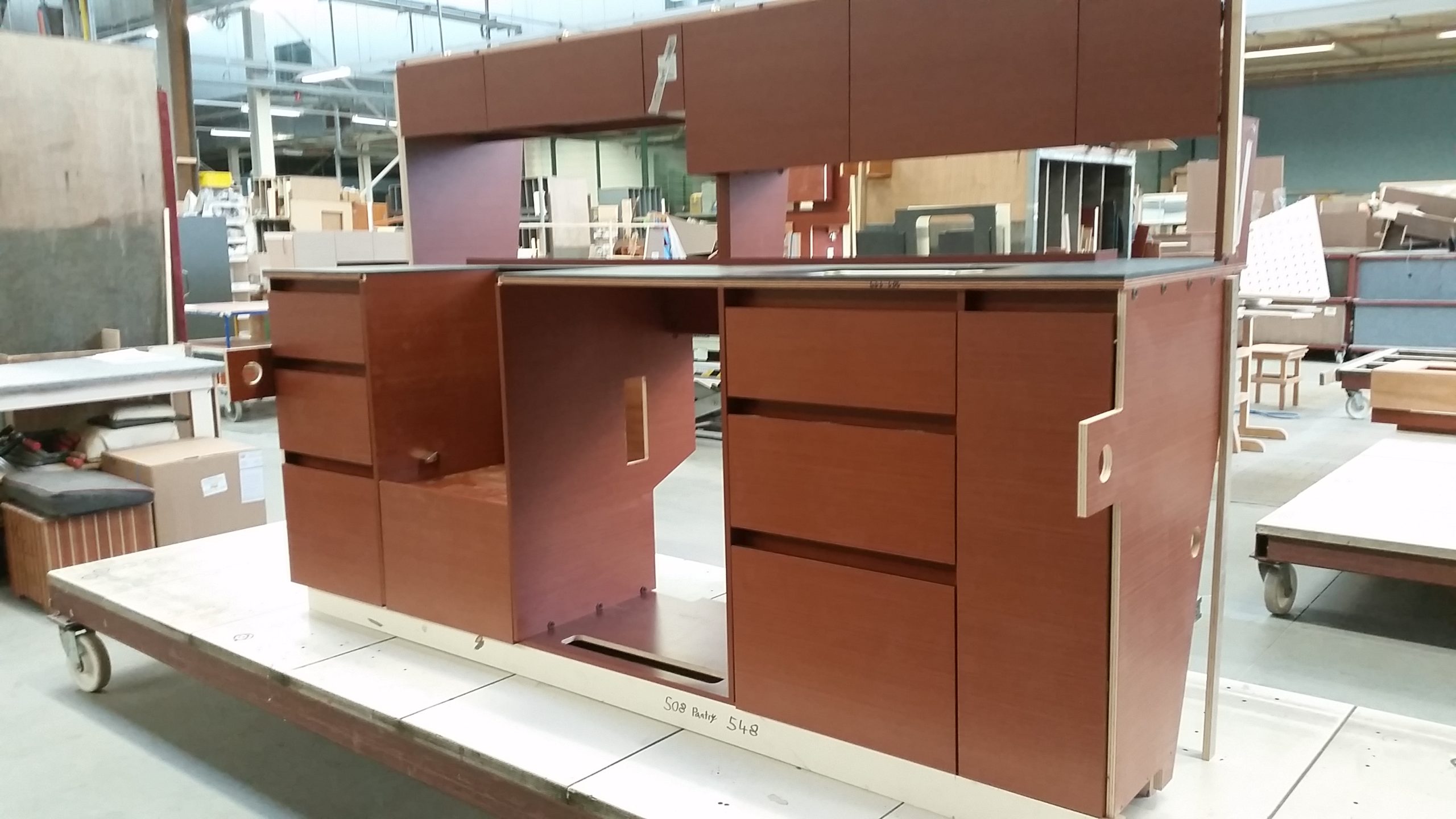 Interessant ist der Aspekt, dass Hanse alle Einbauten von der Pantry bis zur WC-/Duscheinheit so weit wie möglich ausserhalb der Produktionsstrasse vorfertigt. Im entsprechnenden Fertigungstakt werden die Teile dann per Kran komplett in den Rumpf gesetzt.