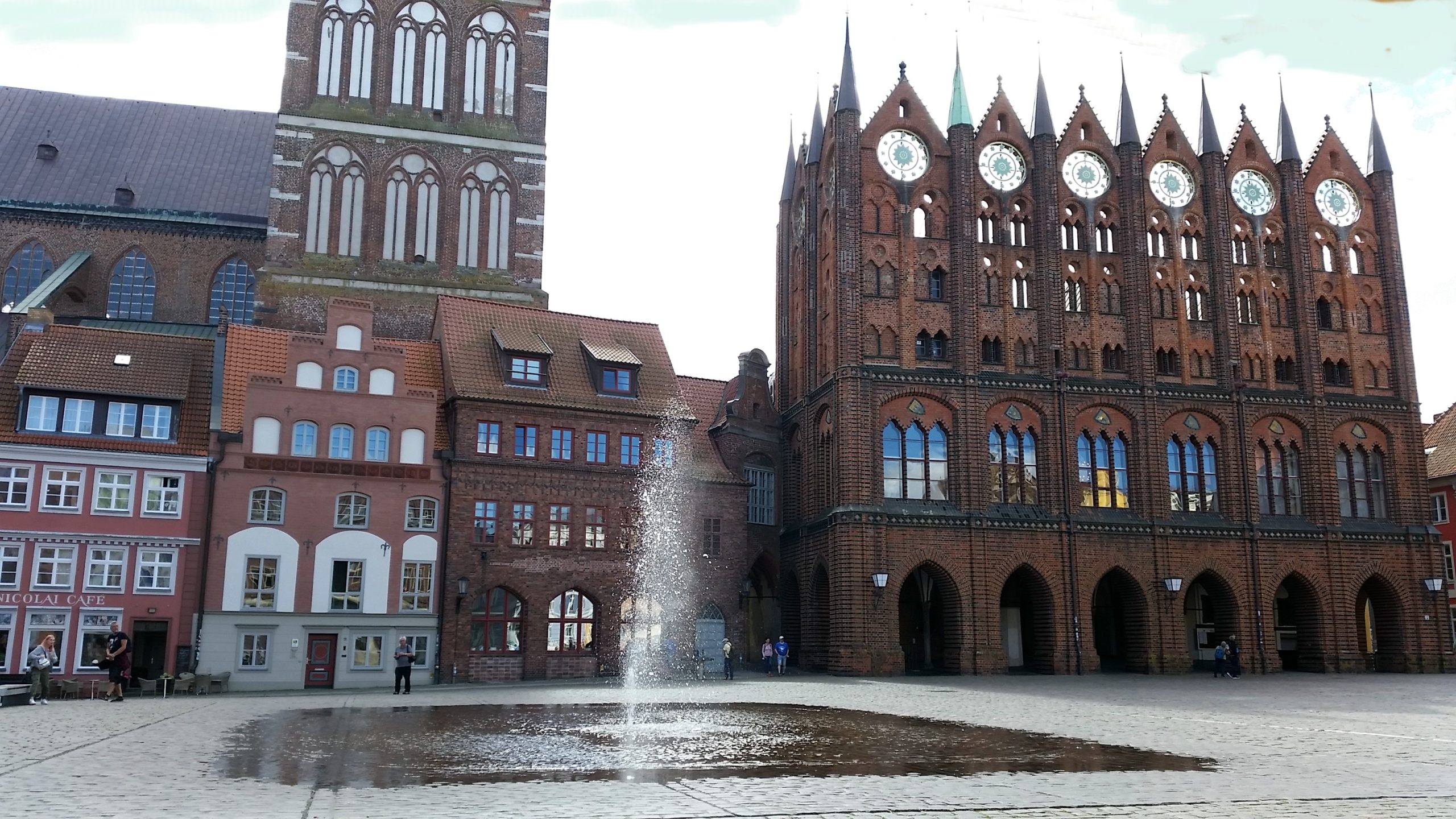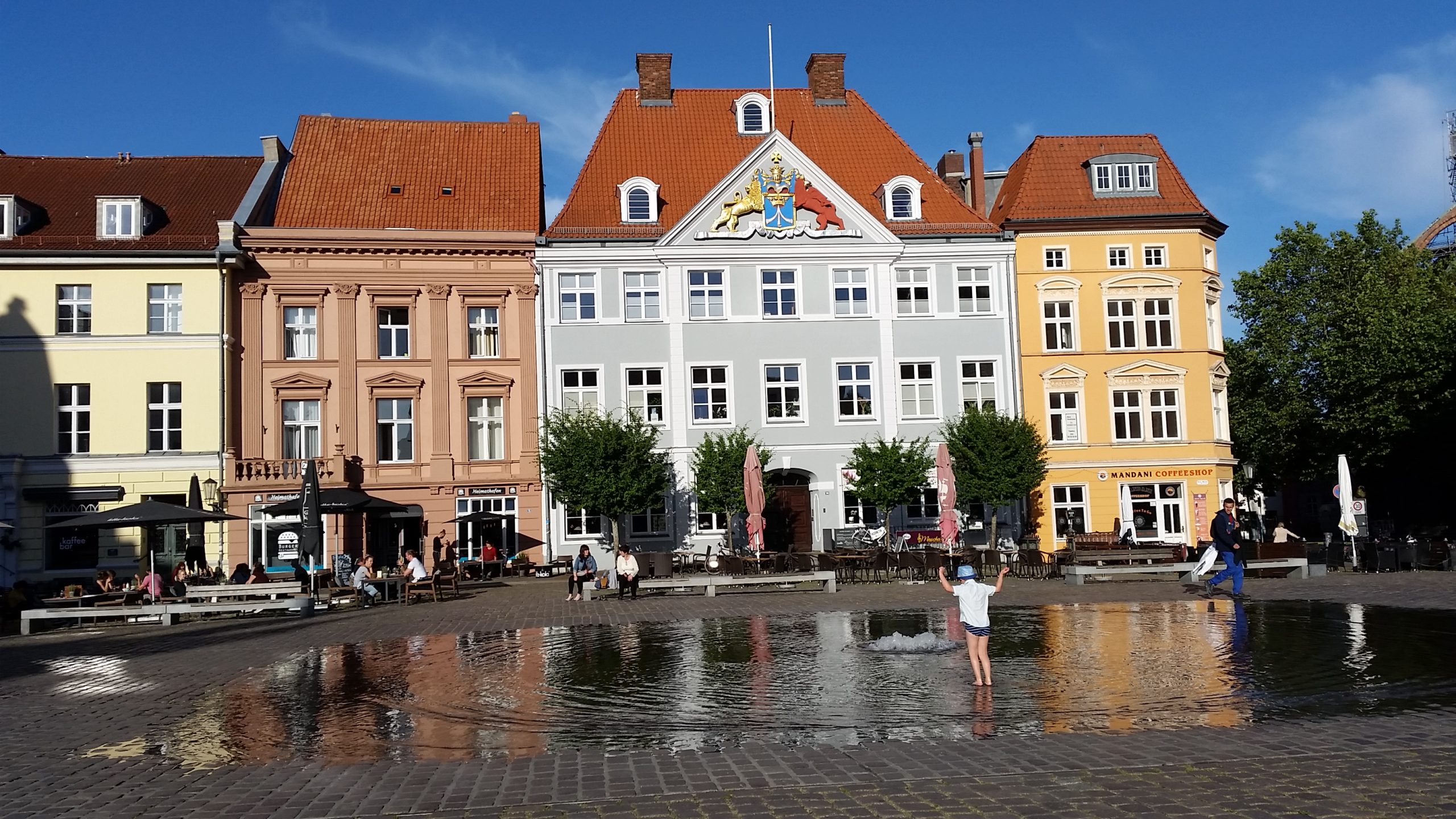 01.09. 2020 | Stralsund | Heute ist Hafentag in Stralsund. Der Marktplatz mit dem ehrwürdigen Ratshaus (Backsteingothik aus dem 13. Jahrhundert) und dem Bodenbrunnen, der in unregelmässigen Abständen Wasserfontänen ausspuckt, ist ein beliebtes Fotosujet. >Bild |