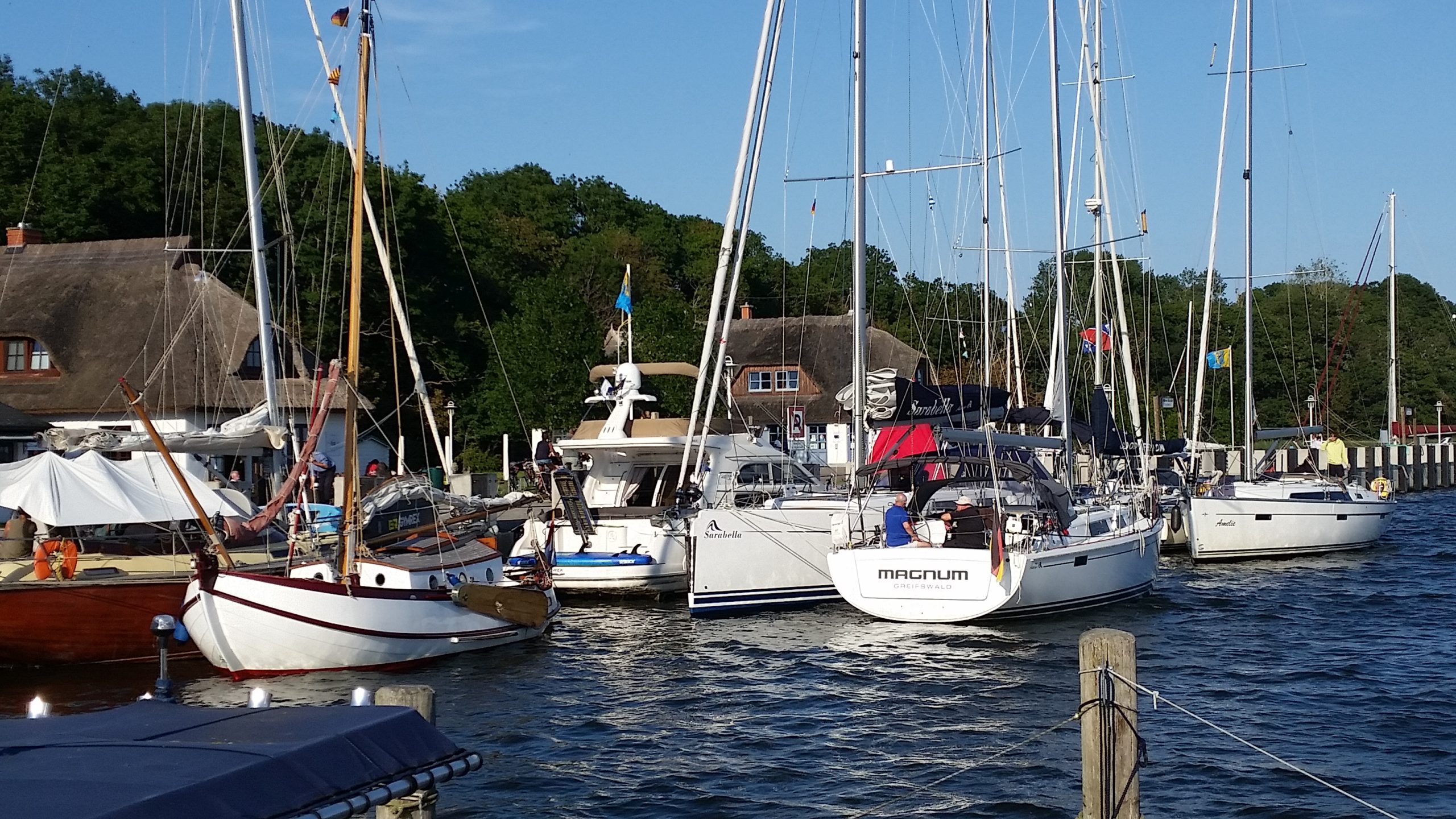 17.09. 2020 | Greifswald | Nach einem erneuten Halt in Gager (Is. Rügen), wo das Wetter in der Nacht schlagartig auf NO-Wind umschlägt, uns mit 30 kn auf den Steg drückt und das Wasser in vier Stunden (!) um fast einen Meter steigt, landen wir am nächsten Morgen wieder wohlbehalten in Greifswald. >Album, Bericht |