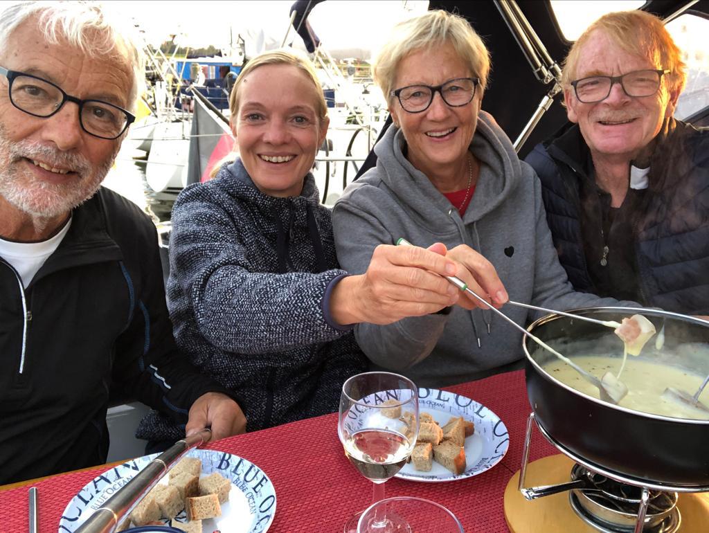 12.09. 2020 | Kloster | Heute machen wir eine Velotour auf Hiddensee, 10 km bis zum schmucken Hafenort Neuendorf, das unter Denkmalschutz steht. Es bläst mächtig, Rückenwind ist Mangelware! >Bild . Edi und Claudia wollen unbedingt baden (17 Grad Wassertemperatur), aber die Brandung ist zu gefährlich. Abends gibt Fondue. >Bild |