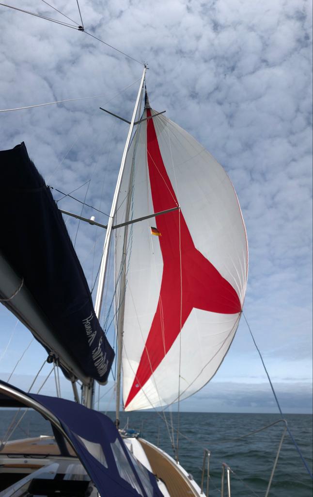 11.09. 2020 | Kloster (Is. Hiddensee) | Nach einem Hafentag in Stralsund sind wir heute in 30 sm „aussen rum“ und nach 11 sm Fahrwassertonnen-abfahren in lauschigen Hafen von Kloster gelandet. Wir haben zum ersten Mal den Gennaker mit 180 m2 der Hanse 470 getestet. Er passt! > Bild |