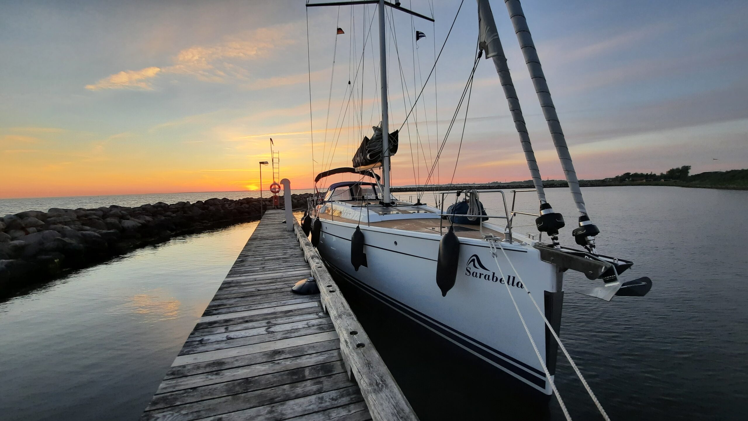 31.05.2021 | Gedser (DK) | Ein wunderschöner und ereignisreicher Tag: Bei der Ausfahrt vom Hafen Kloster sind wir kurz aufgesessen, sodass uns unser Freund Thomas mit seiner Bavaria 36 freischleppen musste. Dann mussten wir retour wieder aus dem dänischen Kleinhafen „Hesnaes“ rausfahren, da die Tiefenangeben (3 m) real nur knapp 2.40 m betrugen. Wir mussten abends um 18 Uhr nochmals 15 sm weiterfahren bis zur Marina Gedser. Am Schluss zeigte das Log 72 sm an, wovon wir 52 sm unter Segel zurück gelegt hatten; ein Rekord! Dafür kamen wir in den Genuss eines herrlichen Sonnenuntergangs. >Bild |
