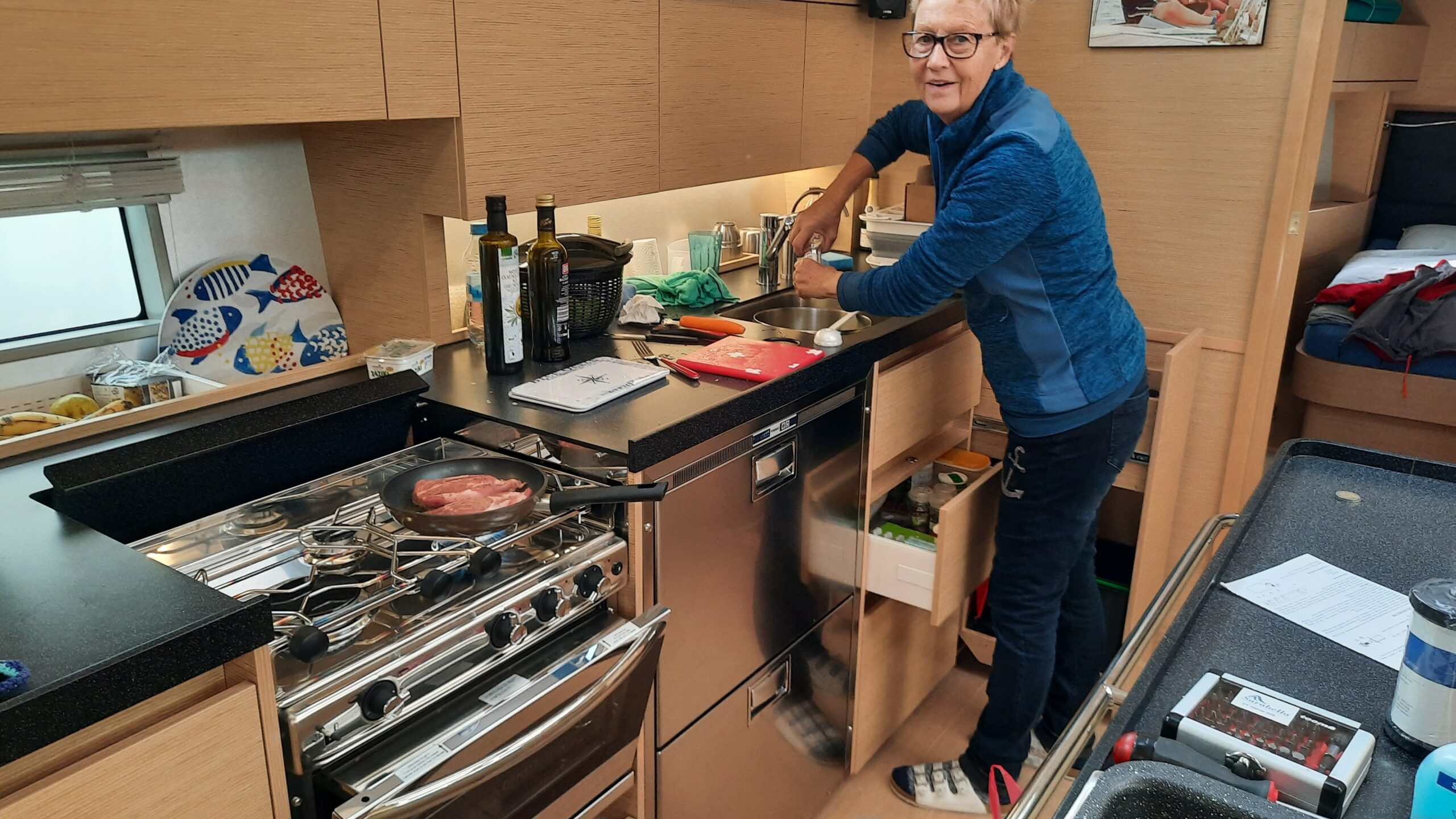 26.05.2021 | Greifswald | Wir sind seit gestern nach guter Reise in Greifswald angekommen. Nach zwei Tagen haben wir schon einige Dinge erledigt: Sprayhood und Bimini angeschlagen, das WiFi unseres tollen Routers eingerichtet – eine Mastbesteigung war unumgänglich zum Wechsel der Simkarte(>Bild) – die Systeme getestet. Regi konnte das erste Mal den neuen Backofen mit Grillfunktion ausprobieren. (>Bild) |