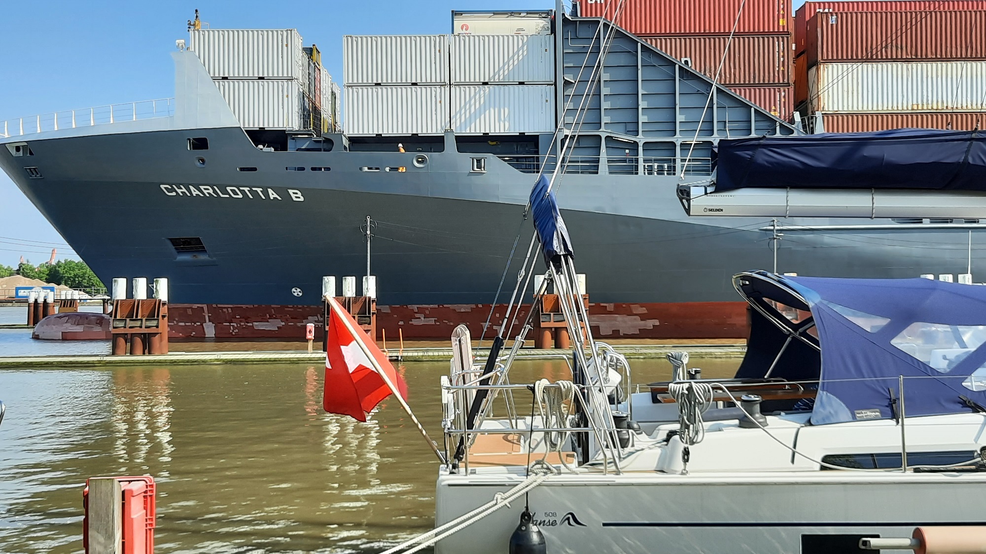 09.06.2021 | Brunsbüttel | Der NOK und somit auch die Ostsee liegen hinter uns. Auch die restlichen 40 Meilen haben wir bei schönstem Wetter und ohne Gegenwind mit 7 kn Grundgeschwindigkeit geschafft. Jetzt liegen wir in der kleinen Marina Brundsbüttel gleich vor der Schleuse und lassen die riesigen Containerschiffe (Länge 160 m !) zwanzig Meter neben uns vorbei paradieren. >Bild |