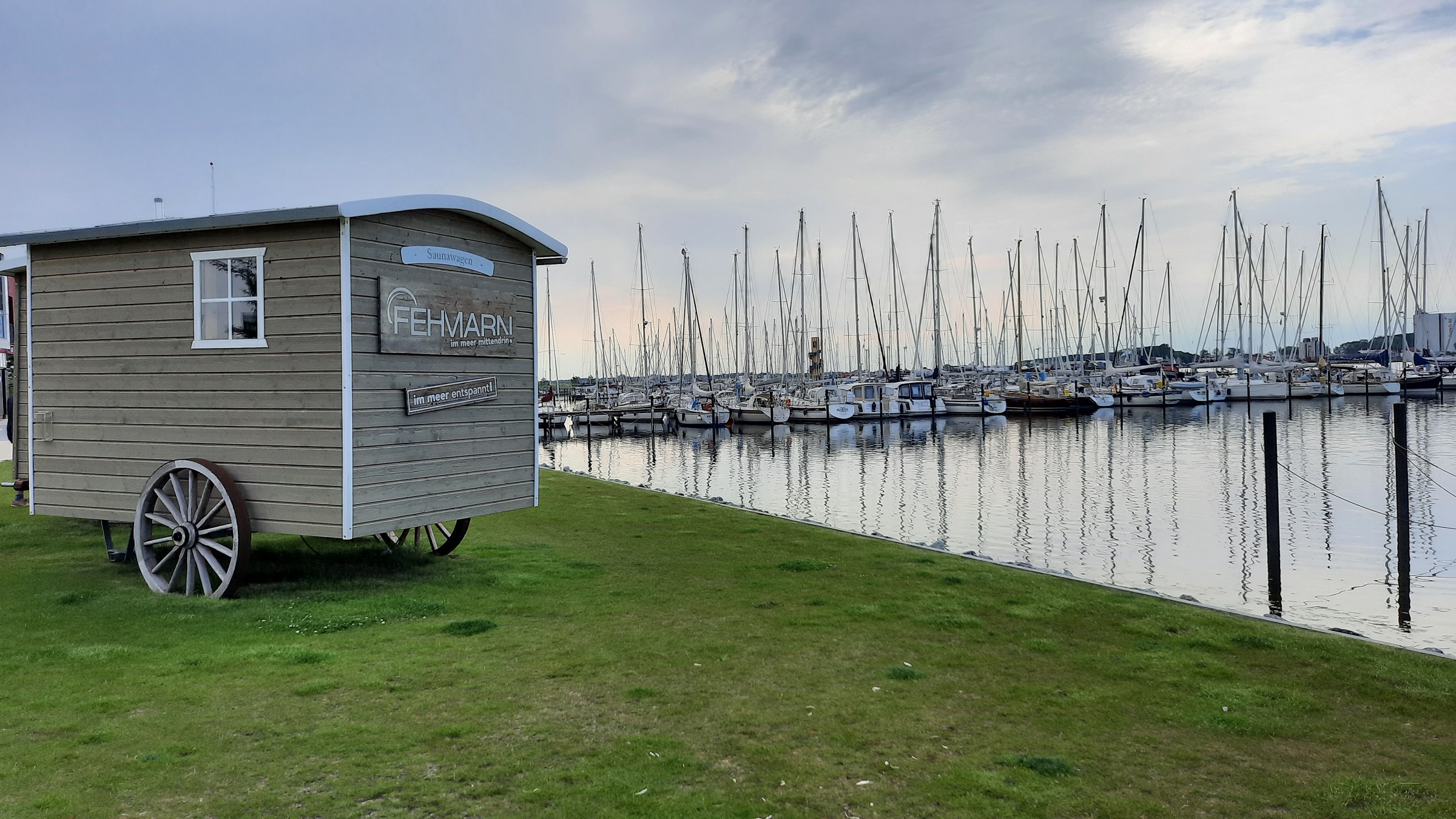 06.06.2021 | Is. Fehmarn | Nach dem Hafentag in Travemünde (Lübeck) segeln wir zur Insel Fehmarn. Leider hat es relativ wenig Wind, so dass wir 70% motoren müssen. Dafür ist der Yachthafen „Burgtiefe“ sehr komfortabel. >Bild, na ja, den Saunawagen lassen wir aus! |