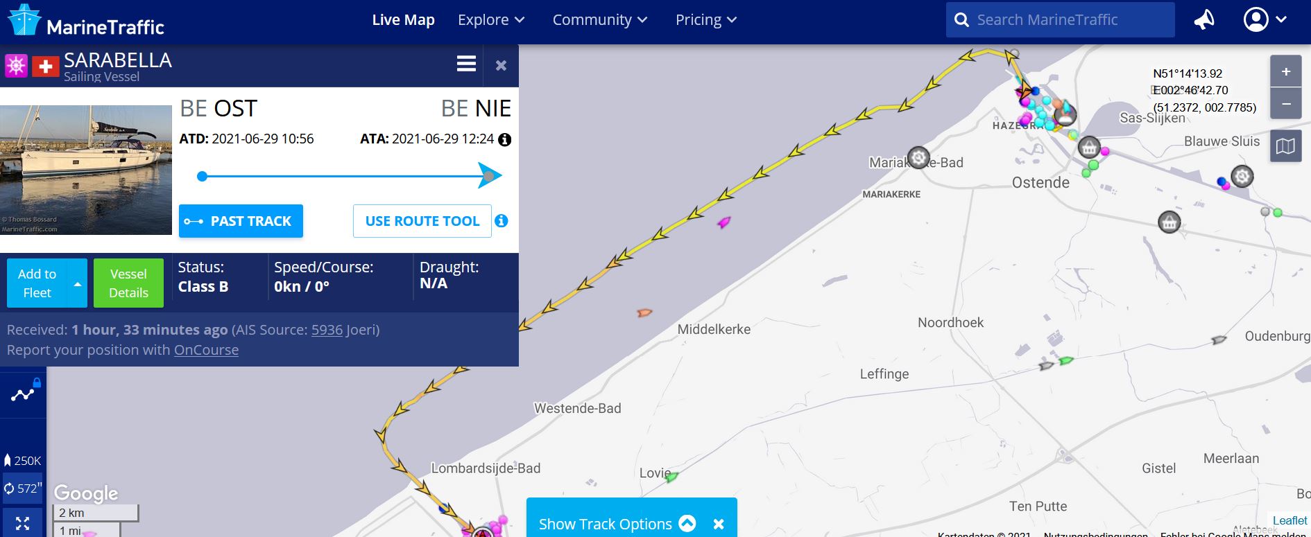 29.06.2021 | Nieuwpoort (B) | Nach der historischen Fussballnacht motoren wir die 8 sm nach Nieuwpoort. (>Track Marine Traffic) Regi kriegt hier ein neues Ölzeug. Beim letzten Gewitter am Sonntag war es löchrig wie ein Käse und sie war total durchnässt. (>Bild) Am Nachmittag mieten wir Velos – Nieuwpoort ist mit seinen 3 Marinas und 2’000 Yachten weitläufig – und fahren Downtown. (>Bild) Am Abend gibt den obligaten Fondueplausch. (>Bild). Es passt zum Wetter: Es regnet wieder mal! |