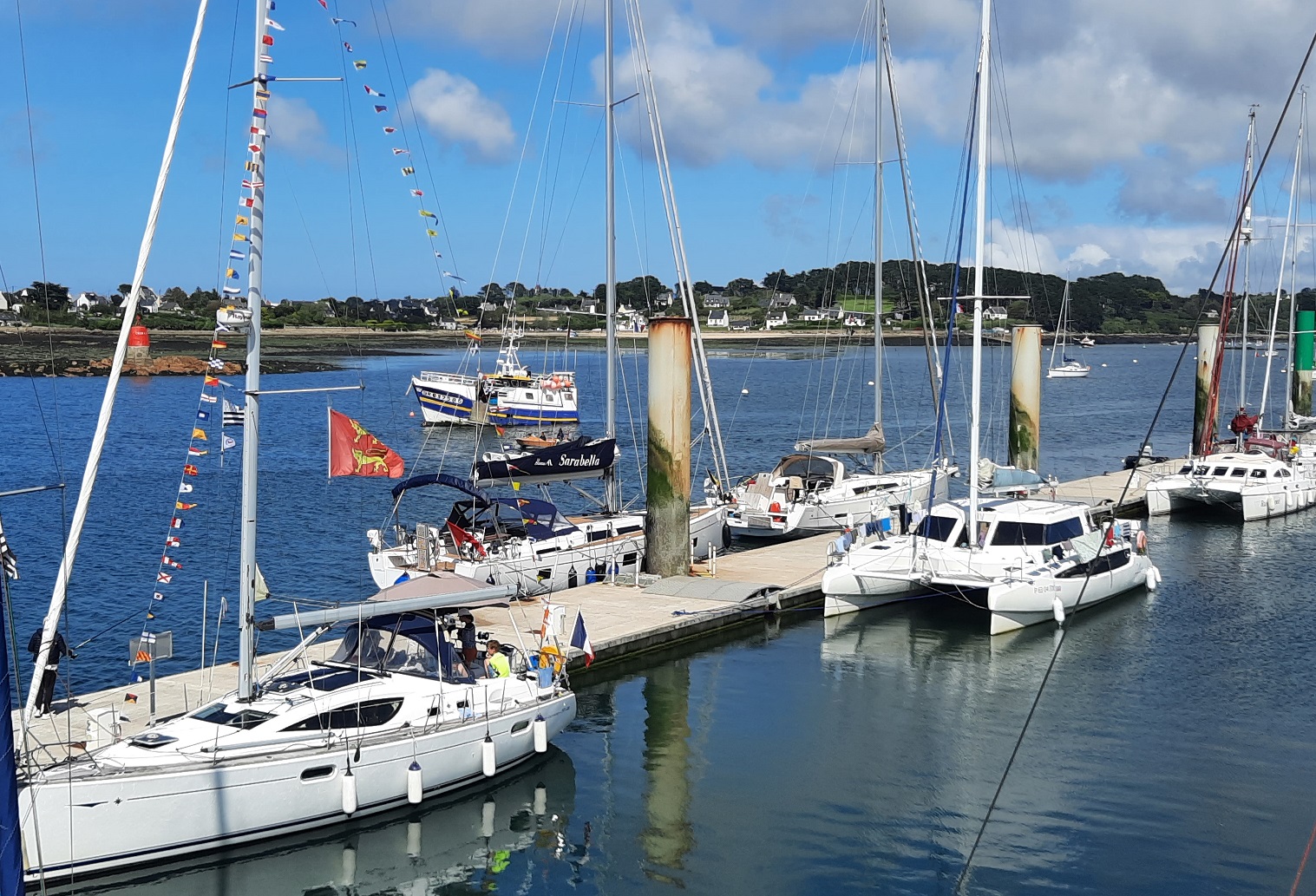12.07.2021 | Lesardrieux | Heute ist um 06.00 Uhr Tagwache, da wir um 07.30 in die Schleuse der Marina St.Malo fahren müssen. Am liebsten wären wir aber im Bett geblieben: es regnete Bindfäden! Die ersten 10 Meilen segelten wir noch im Regen, doch dann klarte es endlich auf und wir segelten mit 18-22 kn Wind und 1-2 Meter Seegang Richtung Lesardrieux. Teilweise knallte die Sarabella bös in die Wellentäler. Um 18.30 Uhr und nach 72 sm (!) erreichten die Marina. Sie liegt in einem malerischen Flusstal. |