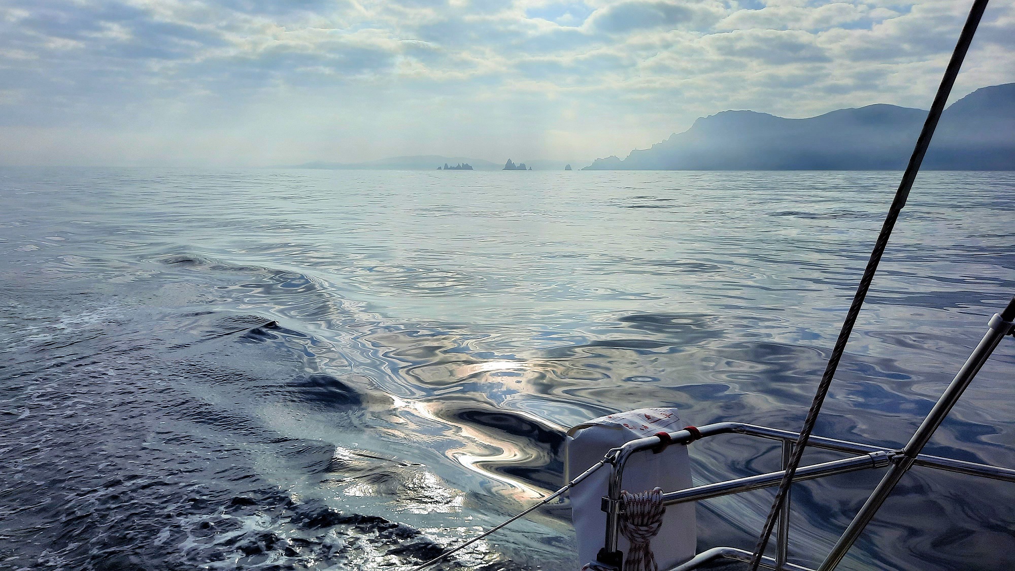 08.09.2021 | Portosin | In gebührendem Abstand haben wir das gefürchtete Cap Finisterra („Ende der Welt“) gerundet (>Bild), obwohl es wenig Wind und Welle hatte. Wir konnten wieder 29 sm von 46sm segeln. Am Schluss reichte es sogar noch zum Reachersegeln in die grosse Ria (Bucht) de Muros, die wie ein See wirkt. |