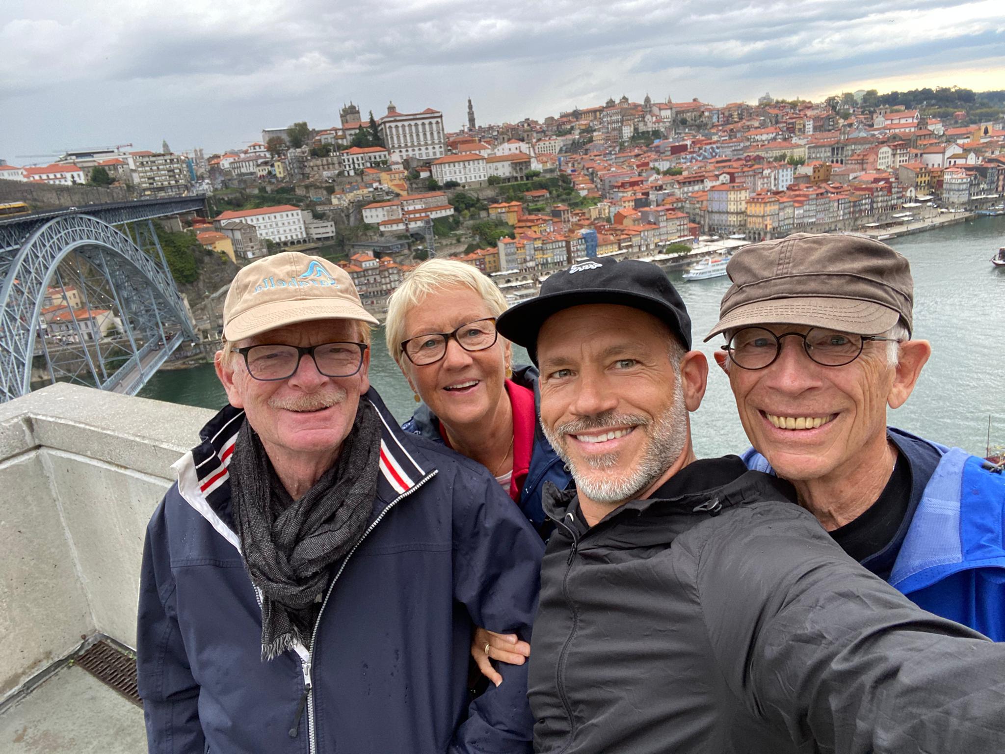24.05.2021 | Figuera de Foz | Mit Adi und Urs (>Bild) machen wir zuerst mal eine kleine Stadttour in Porto. Am Freitag segeln wir den ersten Tag 65 sm bis Figuera da Foz. Gedacht war nur bis Aveiro mit Ankern in einer Bucht, aber als guten Wind hatten, zogen wir es durch, obwohl wir schlussendlich doch motoren mussten. Highlight waren die schon lange vermisste Delphine. (Clip) Gerade vor Einbruch der Dunkelheit konnten wir im 20 Uhr in der Marina anlegen. |