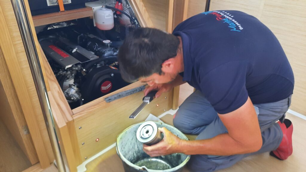 Am Donnerstag Abend kamen Sarah und Chregu gut gelaunt an Bord. Ohne Stress planten wir die nächste Woche. Edi blieb noch bis Samstag, doch mit Segeln war vorläufig nichts. Zuerst musste das leidige Problem mit dem Wasser im Diesel gelöst werden. Der Mechaniker versprach am Donnerstag Morgen zu kommen, womit ich in der Marina Santa Eulalia auf ihn warten musste, während Regi und Edi mit dem Bus nach Ibiza Stadt fuhren. Er kam natürlich nicht, womit unsere Planung wieder Makulatur war. Die Crew nahm die Fähre nach Formentera, fuhr mit Scooters auf dieser schönen Nachbarinsel herum und ich wartete ein zweites Mal auf den Mechaniker, der sich nun definitiv für den Freitag Morgen anmeldete. Und siehe da, Zac von Marine Power brachte nicht nur passende neue Dieselfilter und inspizierte genau die alten Filter auf Wasserrückstände, er gab auch einen guten Ratschlag: „Fülle neuen Diesel auf und füge das Additiv, das Wasser zersetzt, hinzu“. Er sollte recht behalten; bis ende Woche hatten wir keinen einzigen Ausfall mehr. Ich werde aber das System auf eine Doppelfilteranlage von SEPAR umrüsten, damit man auf See keine mühsamen Filterwechsel mit Schrauben und Entlüften im heissen Motorenraum vornehmen muss.