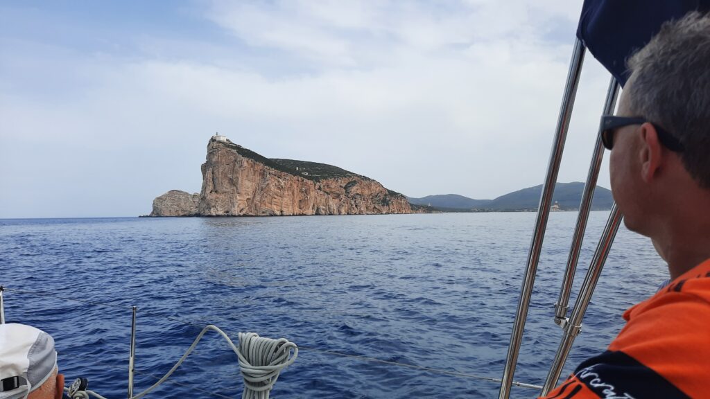 Für die weitere Fahrt bis nach Sardinien veranschlagten wir 36 Stunden für die rund 200 Meilen bis an die Westküste. Und wieder hatten wir Glück, der Südostwind blieb uns erhalten bis dreissig Meilen vor der Küste. Die Nachtfahrt war allerdings anstrengend, da wir zu zweit im Stundenrythmus Ruderwache halten mussten und die Windstärke auch nachts Reffmanöver verlangte. Wir merken, dass lange ¨Berfahrten nicht unser Ding sind. Nach 31 Stunden liefen wir am Dienstag 22. Juni um 10 Uhr in die Marina St. Elmo von Alghero ein und wurden herzlich empfangen. Wir hatten ein weiteren Meilenstein geschafft!