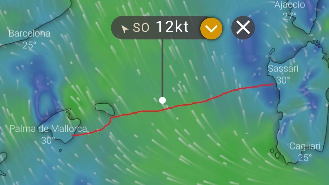 Am Sonntag 20. Juni ging es los von der Marina Cala d’Or auf Mallorca um erst mal die 60 Meilen bis Menorca unter den Kiel zu nehmen. Wie es bei windfinder.com immer wieder vorkommt, waren die angesagten zwölf Knoten untertrieben: Der Wind pendelte sich bei 18-20 Knoten und viel Welle ein. Wenigstens stimmte die Richtung, so dass wir diretissima, ohne ein einziges Wendemanöver fahren zu müssen, die sechzig Meilen in neun Stunden schafften.