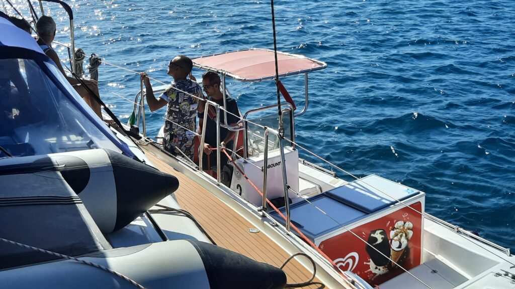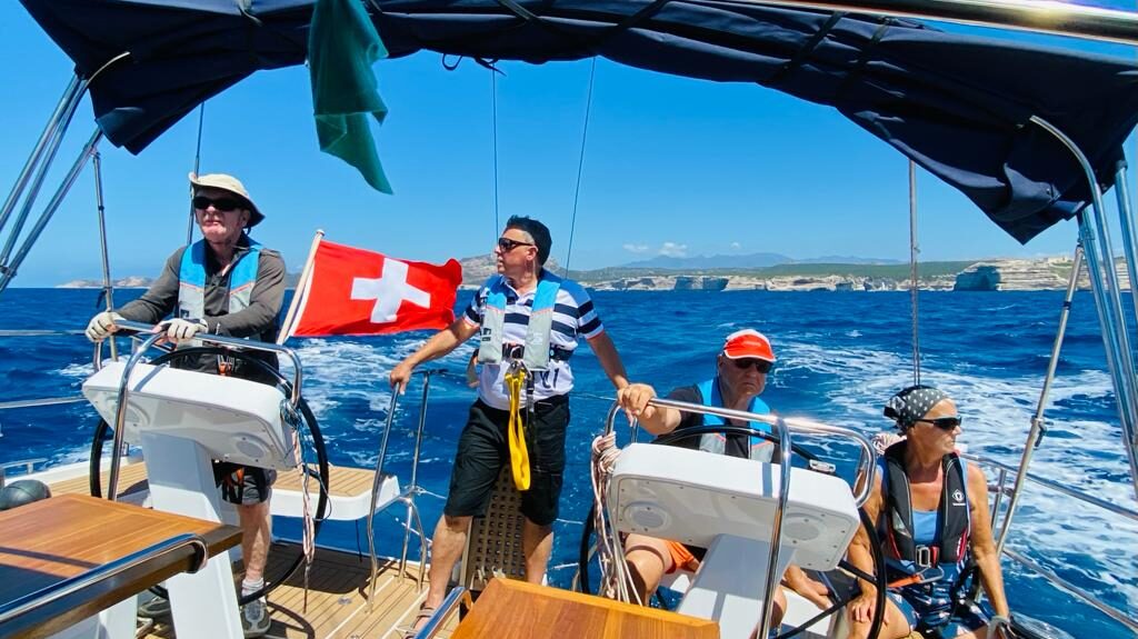 Am nächsten Tag war uns der Wetterglück für einmal hold. Die Klippen von Bonfacio konnten wir bei stahlblauem Himmel aus der Seesicht bestaunen und der Wind hielt uns mit 16-20 Knoten auf Trab. Der Lunchhalt in der Bucht von Porto Puddu – dem Mekka der Surfer und Glider – liess uns verschnaufen, aber das kühlende Bad musste wegen dem starken Wind leider ausfallen.