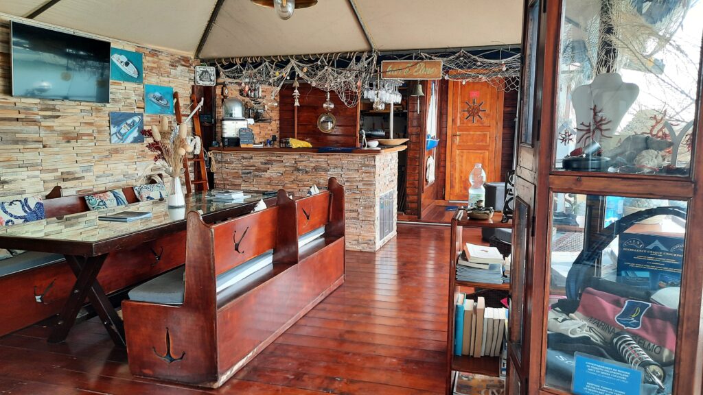 Der Montag war der seltsamste Tag der Woche: Es war dunstig, so dass man kaum zwei Meilen weit sah und Wind war heute ebenfalls Mangelware. Daher mussten wir die 45 Meilen bis nach Teresa Gallura, der nördlichsten Stadt von Sardinien, voll unter Motor zurück legen. Das Trostplaster war das hervorragende Restaurant „La Lampara„, wo wir ein Fischessen mit bestem Wein (Rolf ist unser Weinspezialist) genossen.