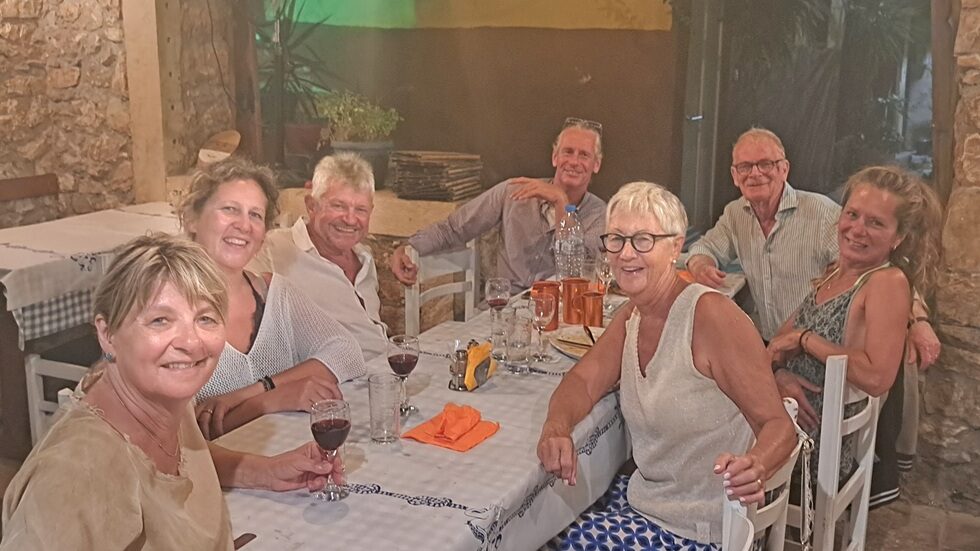 Am Abend gehen wir alle zusammen essen. Peter und Lotti, unsere Schweizer Segelfrreunde sind auch noch dabei. Wim und Petra führen uns zum besten Griechische Restaurant, das „Kaikis Mermaid“. Wir essen hervorragend.