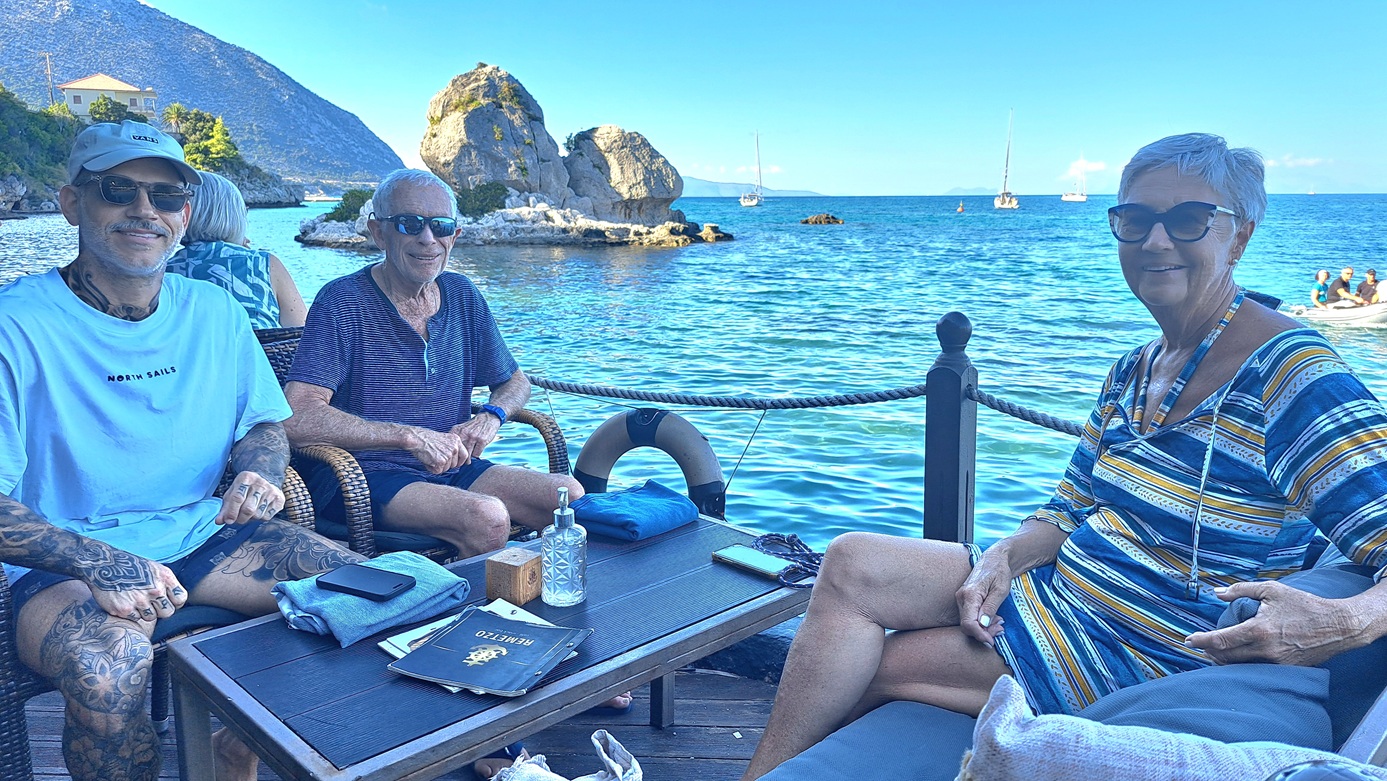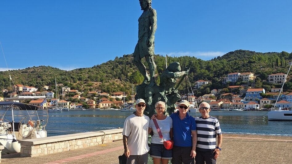 Wir lassen es langsam angehen, da am Morgen nie mit Wind zu rechnen ist. Wir motoren eine Stunde nördlich bis zu einer herrlichen Bucht auf Kefallonia, namens Koutsoupia. Dort machen wir eine Lunchpause und die Crew geht schnorcheln in sensationell blauem Wasser. Um drei Uhr heben wir den Anker und motoren Richtung Ithaka, der Insel von Odysseus, auf jeden Fall gemäss den Erzählungen von Homer. Wir wollen im Hauptort Vathi am Stadtquai anlegen und nach drei Anläufen mit falschen Nummern, kann ich eine Reservation machen. Beim Einlaufen hat es aber 15 Knoten Seitenwind und Georg der Hafenmeister, will uns einen schmalen Platz zuweisen, der mit Buganker schwer anzusteuern ist. Wir verzichten deshalb darauf und gehen in der weiten Bucht mit ungefähr 40 weiteren Yachten vor Anker. Heute ist wieder mal Heimküche angesagt und den Ausflug in den hübschen Ort sparen wir uns für den Morgen auf.