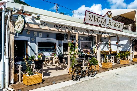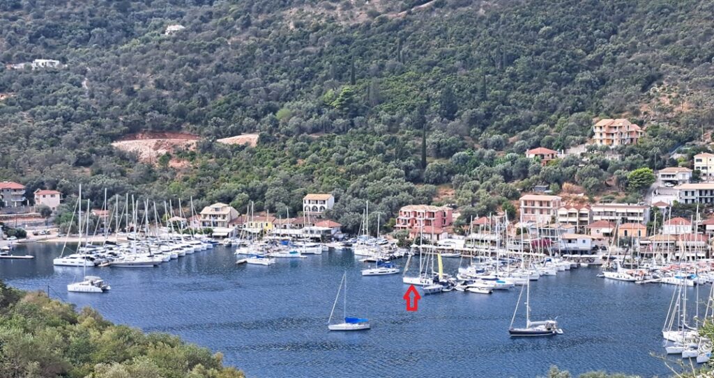Wir wundern uns immer, weshalb Yachten schon am Morgen einen Ankerplatz suchen. Um zehn Uhr dampft das erste Motorboot rein, will partout neben uns ankern und fährt über unsere Landleine. Eine zweite Yacht wartet geduldig vor uns, da sie den Platz auf der anderen Seite von uns haben möchte. Der Australier nimmt sich aber alle Zeit der Welt um seine Landleinen einzuziehen. Endlich nimmt er den Anker auf und wir können ebenfalls ablegen. Mit einer kleinen Brise SW-Wind kreuzen wir Meganisi hinab. Wir wollen in Arcudi anlegen, da es dort schwimmende Schweine haben soll, die zu Booten schwimmen um gefüttert zu werden. Leider sehen wir keines der Viecher und drehen wieder ab um in Sivota, wo wir einen Platz am Trocolo Steg reserviert haben, anzulegen. Alles läuft wie am Schnürchen und um vier Uhr sitzen wir schon bei Cappuchino und Apfelkuchen in der bekannten Bakery.